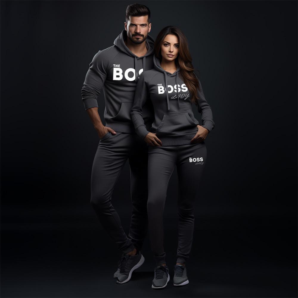 Комплектът "Boss / Boss Lady" е идеален за двойки, които търсят качество и стил в ежедневието си. Той е подходящ както за млади влюбени, така и за зрели партньорства, които искат да изразят своята уникалност и съвместимост. С тези екипи вие сте готови за разходка в парка, за тренировка заедно или просто за релакс у дома в комфорт и стил.