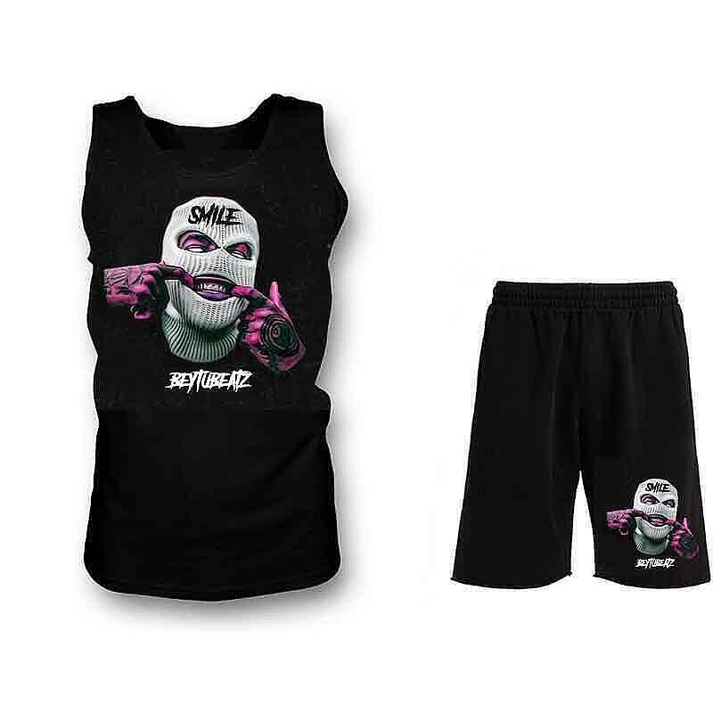 Къс Екип FOTL {потник} Gangsta Mask 2 се състои от потник и шорти с марката Fruit Of The Loom.