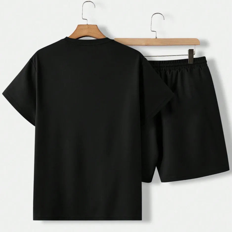 Този екип е създаден за мъже, които ценят качеството и свободата на движение. Състои се от две части: тениска и шорти, които са истинско отражение на вашата активна ежедневие. Тениската е изработена от 100% памук, който осигурява не само мекота при допир, но и издръжливост, благодарение на подсилените двойни шевове на деколтето и ръкавите. С грамаж от 195гр./м2, тя обещава да издържи на времето и интензивните тренировки.