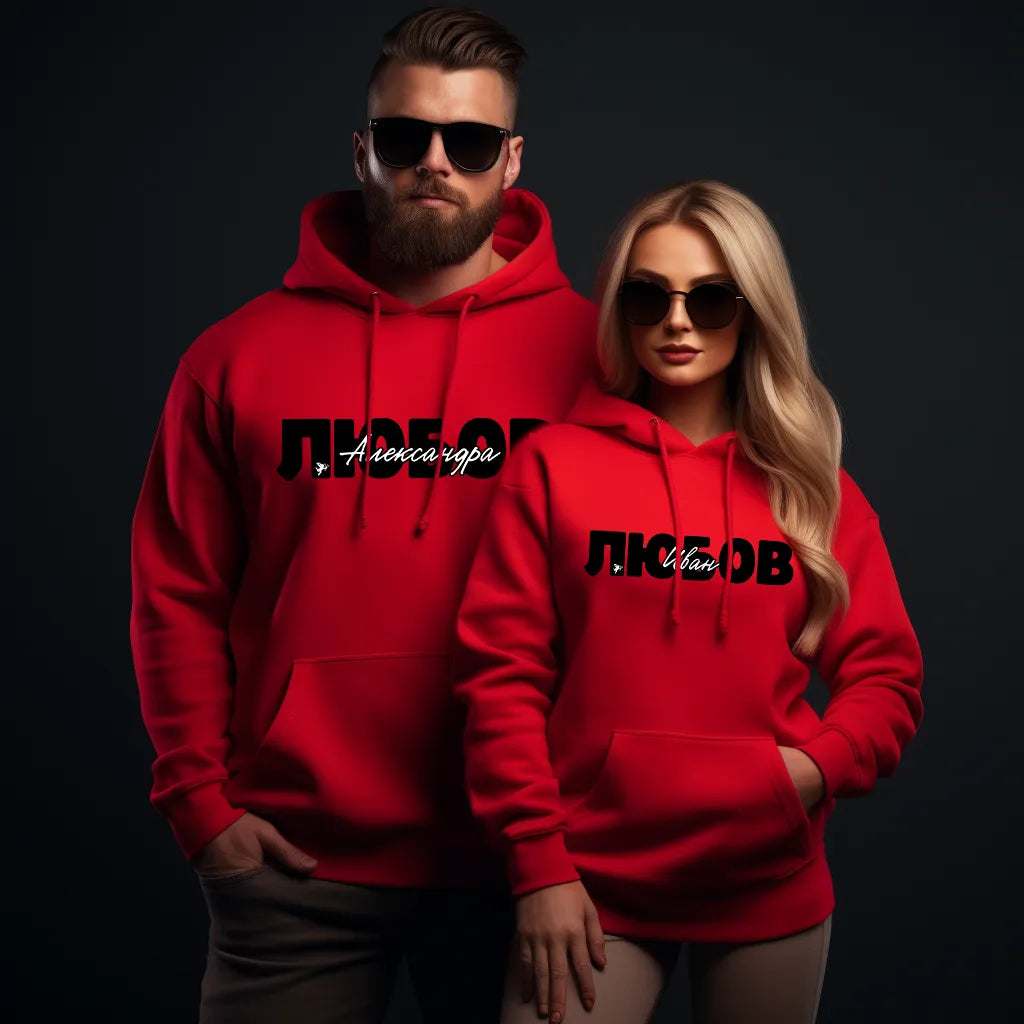 Персонализирани ДВА броя УНИСЕКС Суичъри Любов - червени