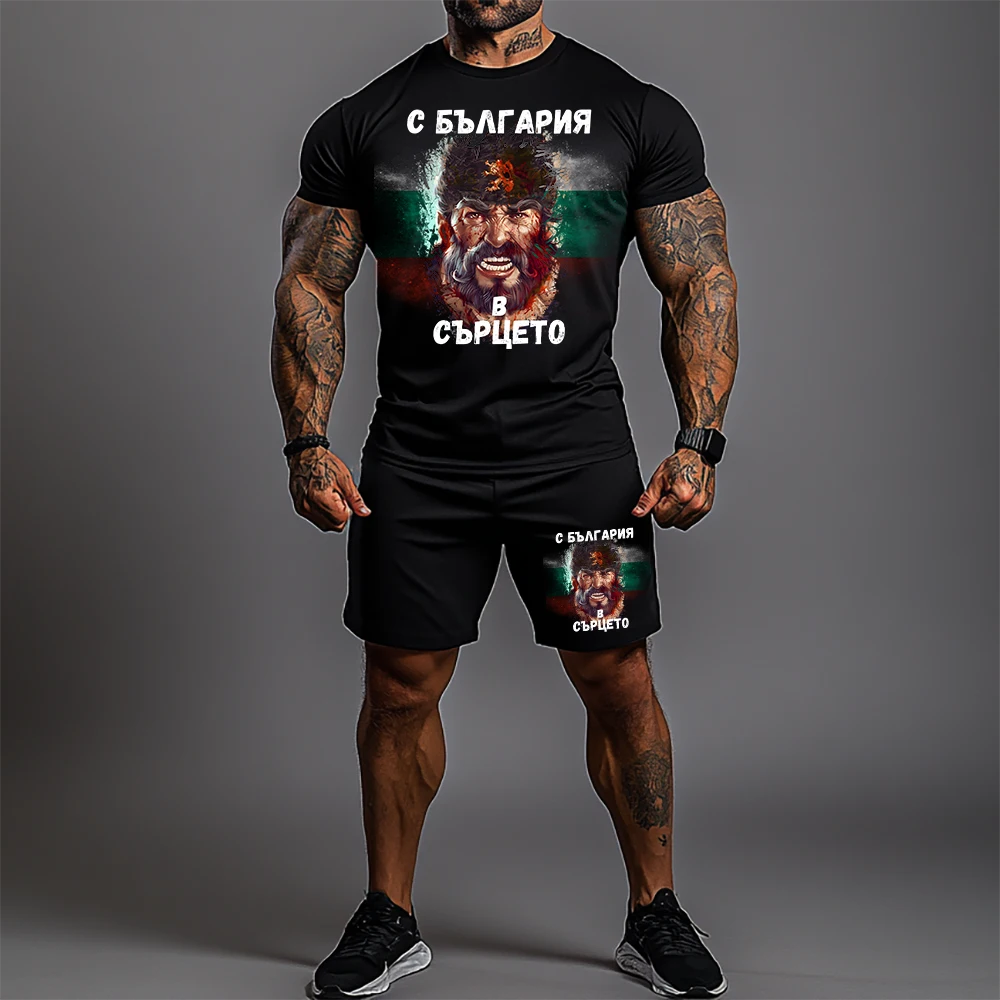 Този екип е създаден за мъже, които ценят качеството и свободата на движение. Състои се от две части: тениска и шорти, които са истинско отражение на вашата активна ежедневие. Тениската е изработена от 100% памук, който осигурява не само мекота при допир, но и издръжливост, благодарение на подсилените двойни шевове на деколтето и ръкавите. С грамаж от 195гр./м2, тя обещава да издържи на времето и интензивните тренировки.