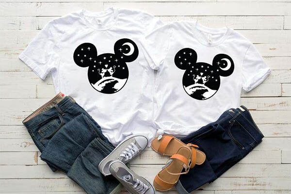 Тениски за двойки Мики и Мини под звездите - не се свива, не се развлича и не избелява с времето, както се случва с повечето продавани дрехи.